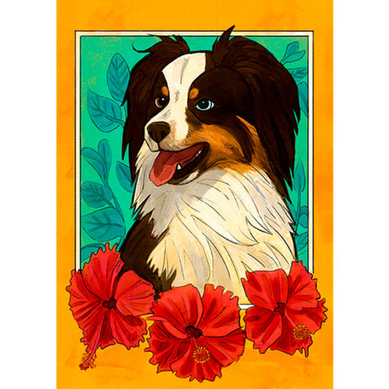 Made with digital watercolor brushes, comes with background elements like flowers etc.